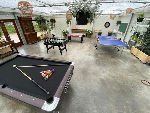 Er is ook een indoor belevingsruimte van 230m2 naast de vakantiewoningen die vrij gebruikt mag worden door onze gasten. Hier kan jong en oud zich vermaken met oude volksspelen, biljart, pingpong, kickeren, zandbak en allerlei kinderspeelgoed.